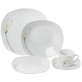 Description Domestic Calla 920474 Servizio da tavolo in porcellana, 30 pezzi: 6 tazze, piattini, piatti da dolce, piatti fondi, piatti piani