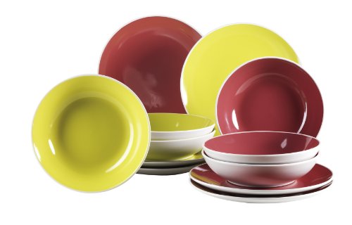 Domestic Two Tone 923199 Servizio da tavola 12 pezzi, con 6 piatti fondi e 6 piani, colore: Viola/Verdecaratteristiche